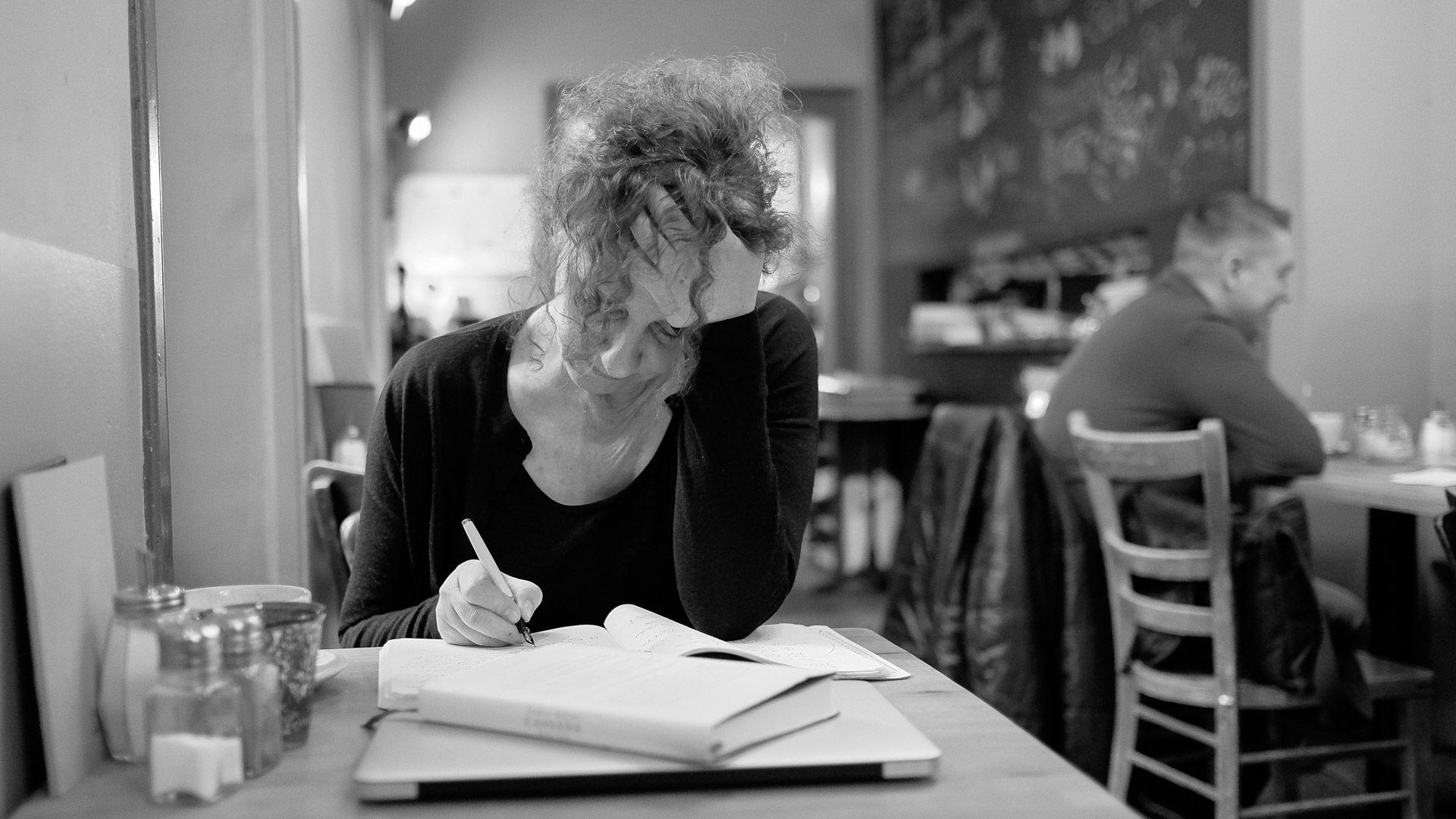 Mit dem Feedback auf ihr erstes Buch war die Frankfurterin ganz zufrieden: „Die Kritiken waren durchweg positiv. Die Verkaufszahlen auch – also kein Bestseller, aber so wie vom Verlag erwartet. Als Frankfurter Autorin hätte ich mir aber eine etwas größere Wahrnehmung in der Region gewünscht.“ Beim Schreiben sitzt sie gerne im Kaffeehaus: „Ich brauche Trubel um mich, dann kann ich mich am besten fokussieren und bin wie unter einer Glocke. Wenn ich Ruhe habe, gehe ich vielmehr ins Außen. Vor einiger Zeit hatte ich die Idee, mir eine Gartenlaube in Eckenheim zuzulegen, um dort zu schreiben. Eine schöne Vorstellung, aber das hat überhaupt nicht funktioniert.“